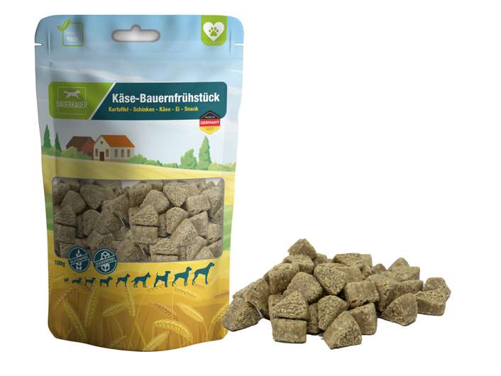 5x Dauerkauer Bauernfrühstück Kartoffel, Käse, Schinken und Ei Belohnungs- und Trainings-Leckerli 100g