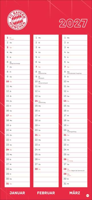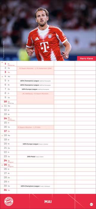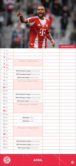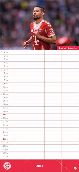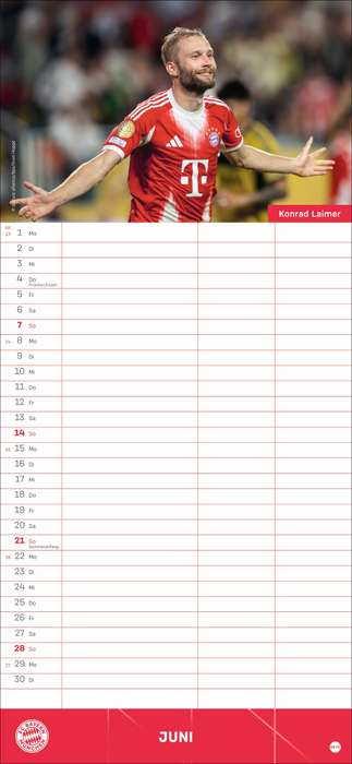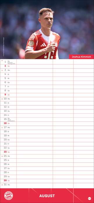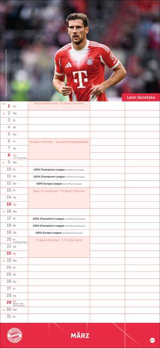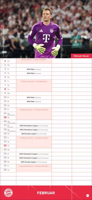 - Besser planen mit den Fußball-Stars des Rekordmeisters: Monatlich neue Porträts von Neuer, Kimmich, Müller und Co.