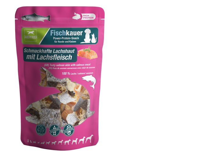 Dauerkauer Fischkauer - Schmackhafte Lachshaut mit Lachsfleisch - 100 % Lachs - getrocknet - für Hunde und Katzen