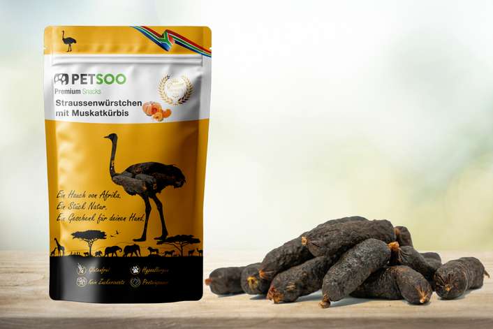 Petsoo Premium Straussenwürstchen für Hunde in verschiedenen Sorten
