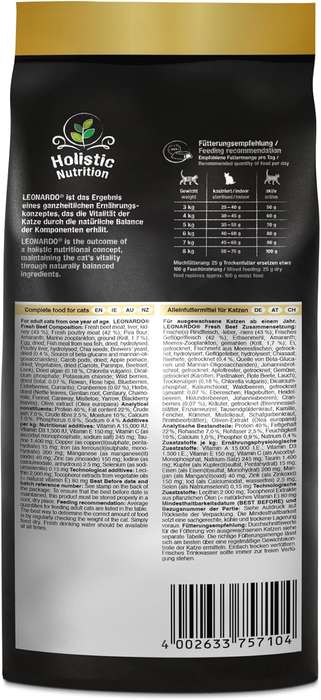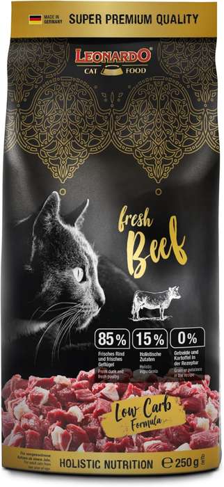 Leonardo fresh Beef ist ein Alleinfuttermittel für Katzen ab einem Jahr und eignet sich ideal für Katzenhalter, die Wert auf Frische, Qualität und eine artgerechte Ernährung legen.