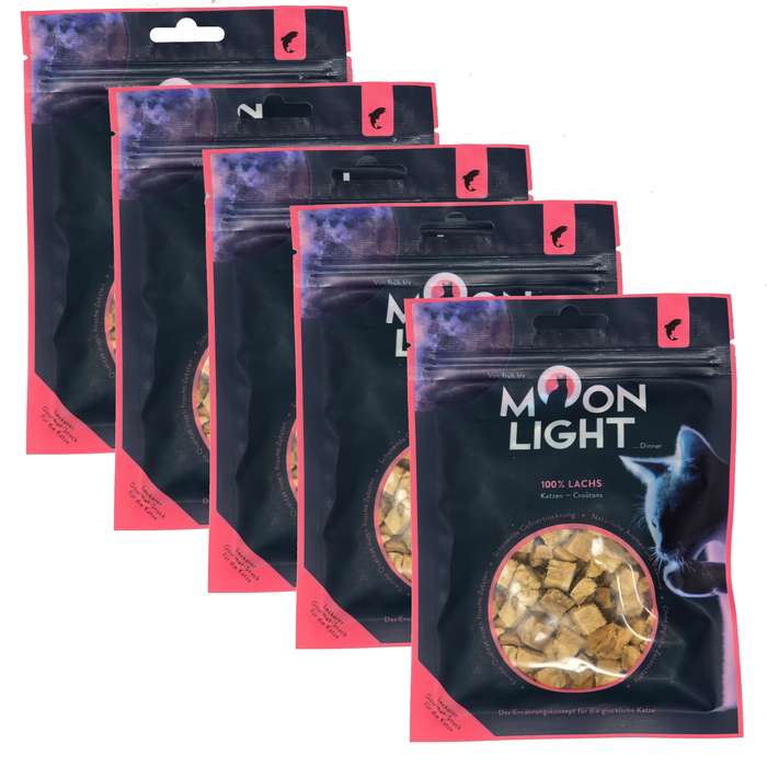 Moonlight-Dinner Snack für Katzen - 100 % Lachs gefriergetrocknete Würfel Croutons